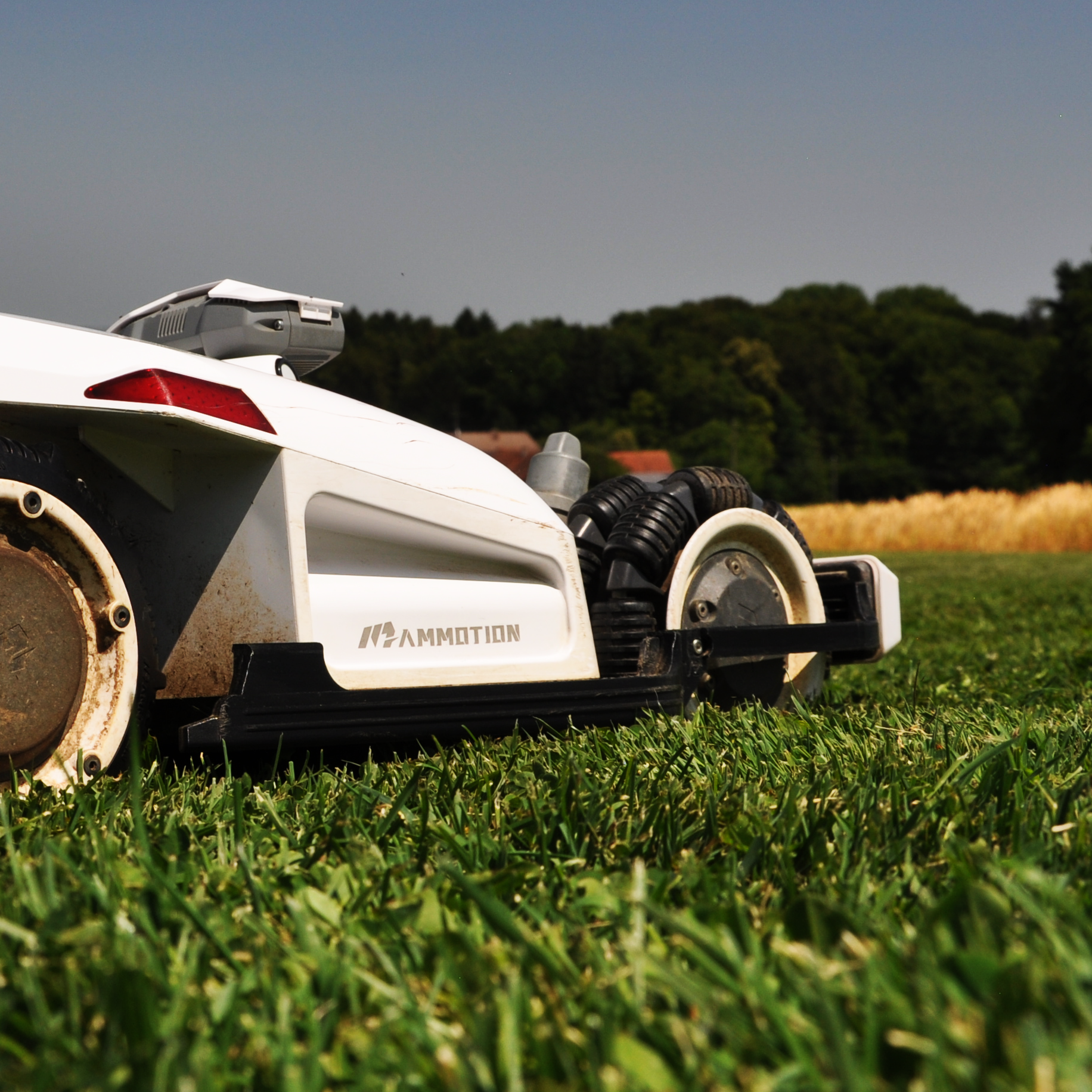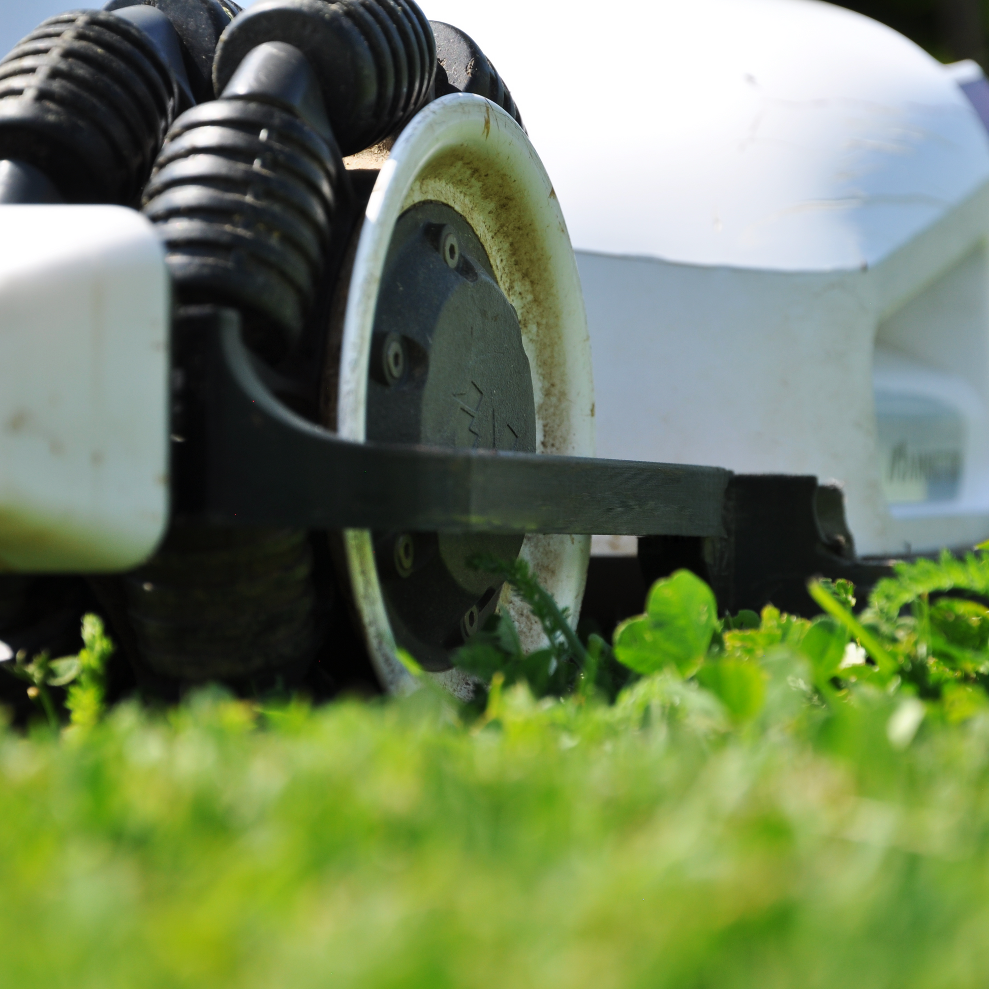 Effiziente Rasenpflege: Der Seitenschutz ermöglicht es dem Mähroboter, auch schwer zugängliche Bereiche und Rasenkanten gründlich zu mähen.